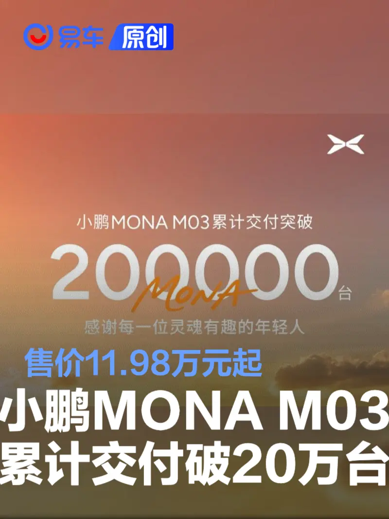 易车讯 11月7日,小鹏MONA宣布,上市14个月以来,小鹏MONA M03交付20万台达成。新车于8月27日正式上市,售价11.98-15.58万元。10月29日,小鹏MONA达成20万台整车下线,连续14个月月交付过万。