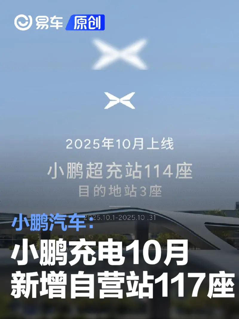 易车讯 11月8日,小鹏汽车宣布,小鹏充电2025年10月新增自营站117座,其中S5超快充站12座,S4超快充站98座,超充站4座,目的地站3座。
