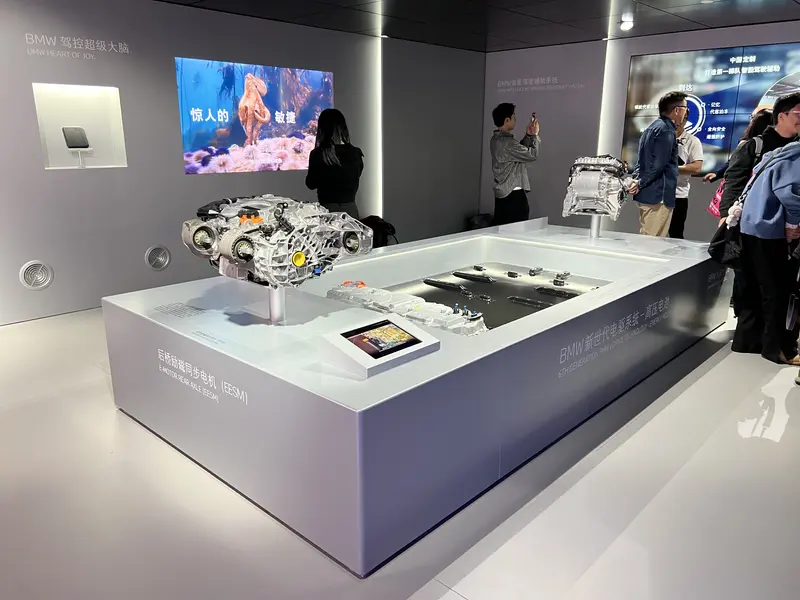电机方面,宝马的后桥励磁同步电机全面升级,并结合全新紧凑异步电机组成高效双电机组合。使车辆能量损耗降低40%、整车效率提升20%,电机重量减轻约10%。