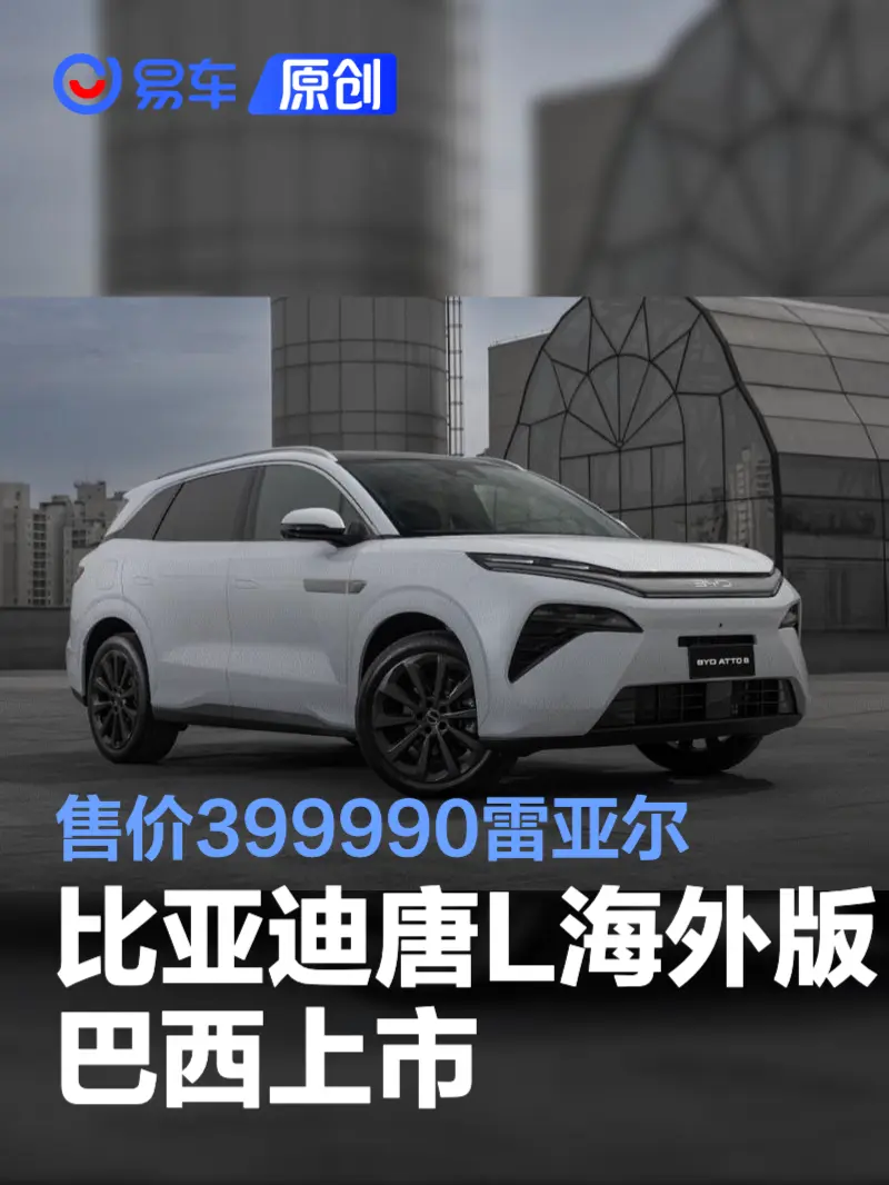 易车讯 日前据相关媒体报道,比亚迪Atto 8(国内对应比亚迪唐L)登陆巴西市场,新车在当地仅提供DM-p插混四驱版本,售价399990雷亚尔(约合人民币52.67万元)。