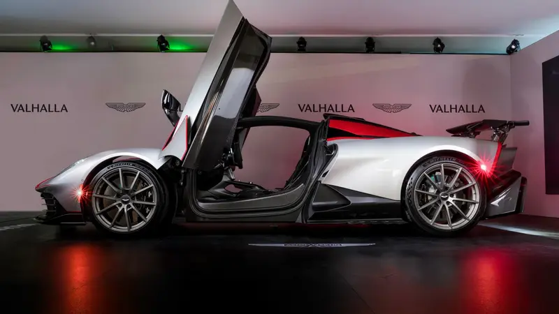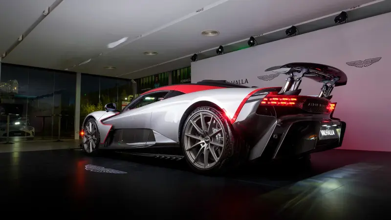 Valhalla是阿斯顿·马丁有史以来第一款量产中置引擎超级跑车、第一款插电混动车型、第一款搭载定制版平面曲轴4.0升双涡轮增压V8发动机的车型、第一款采用阿斯顿·马丁全新8速双离合变速箱(DCT)并集成电机和液压驱动电子后限滑差速器(E-diff)的车型。