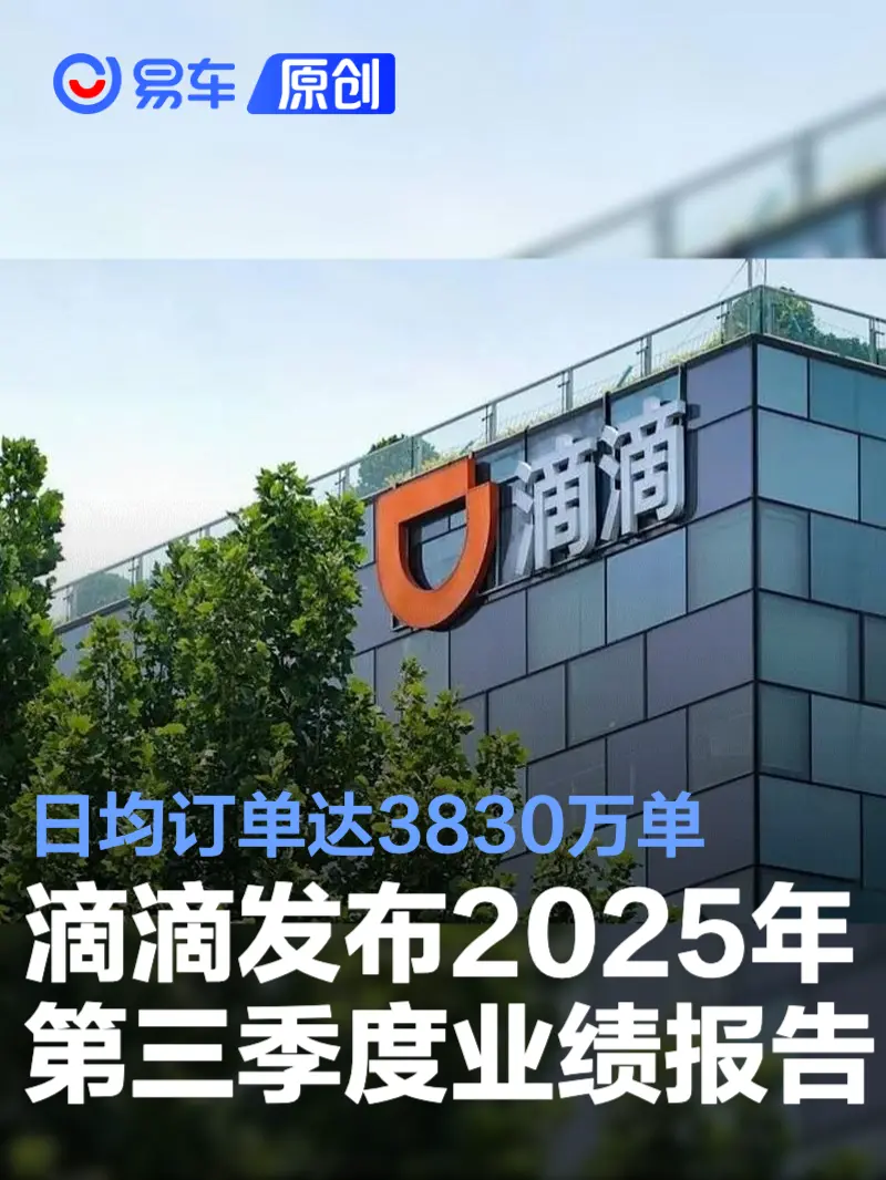易车讯 11月26日,滴滴发布2025年第三季度业绩报告。三季度滴滴核心平台(包括中国出行和国际业务)订单量同比增长13.8%,攀升至46.85亿单;滴滴中国出行订单量为35.23亿单,同比增长10.7%,日均订单达3830万单。