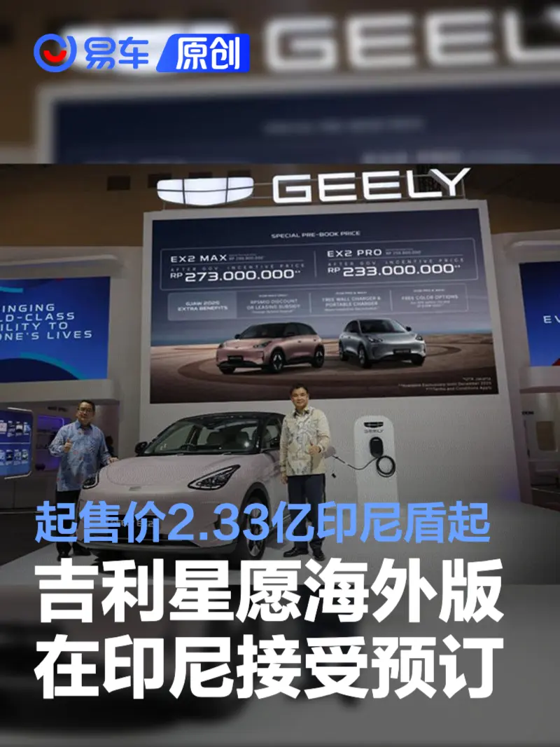 易车讯 日前据相关媒体报道,吉利汽车印尼公司首次亮相2025年雅加达国际车展(GJAW),并公布了吉利EX2(国内为吉利星愿)的官方预订价格,新车预售价2.33-2.73亿印尼盾。