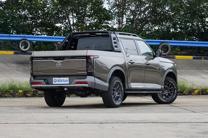 来到车尾,新车尾灯延续了头灯的T字造型,并通过黑色装饰条将两个尾灯左右相连。新车在尾板上镶嵌了日产的品牌Logo,并在下方设置了两级踩踏区。