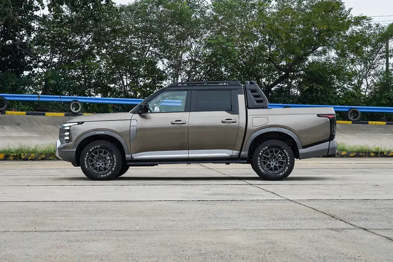 锋坦Frontier Pro PHEV整体延续了锋坦Frontier Pro的设计语言,只是在前格栅上方加入了封闭元素以凸显新能源身份。此外,PHEV车型还在车头上方加入了如同时空胶囊般的横贯式日行灯,凸显了新车的时尚感。