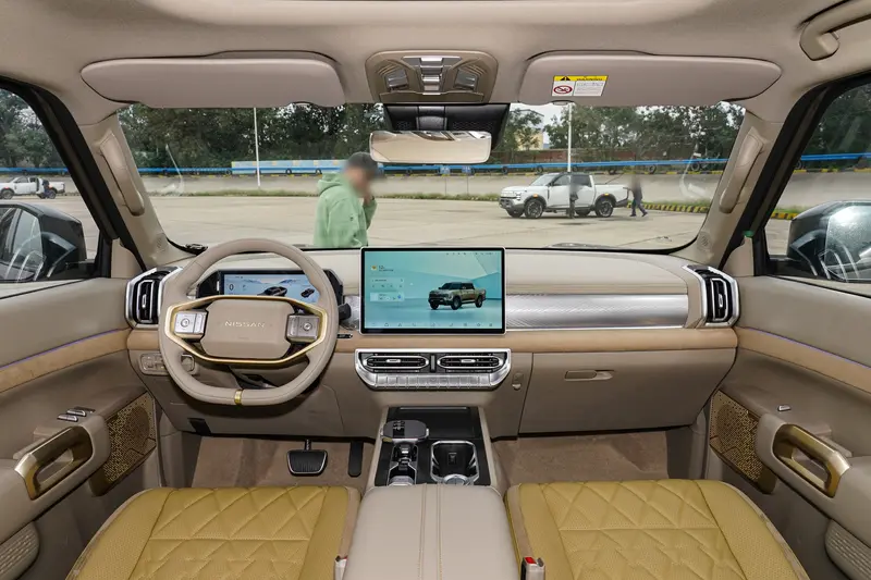 内饰方面,锋坦Frontier Pro采用了非常前卫的乘用车化设计,搭载14.6英寸悬浮中控屏与全液晶仪表,配有实体的钢琴按键以及电子排挡杆。此外,新车拥有电动货箱门、货箱盖、自动伸缩踏板智能联动系统。