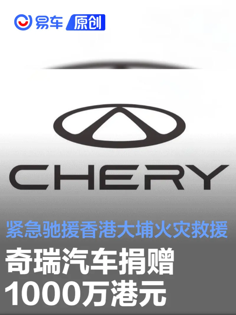 易车讯 11月27日,奇瑞汽车股份有限公司通过中国红十字基金会捐赠1000万港元,紧急驰援香港大埔灾区的抢险救援,并助力灾后援助和恢复工作。