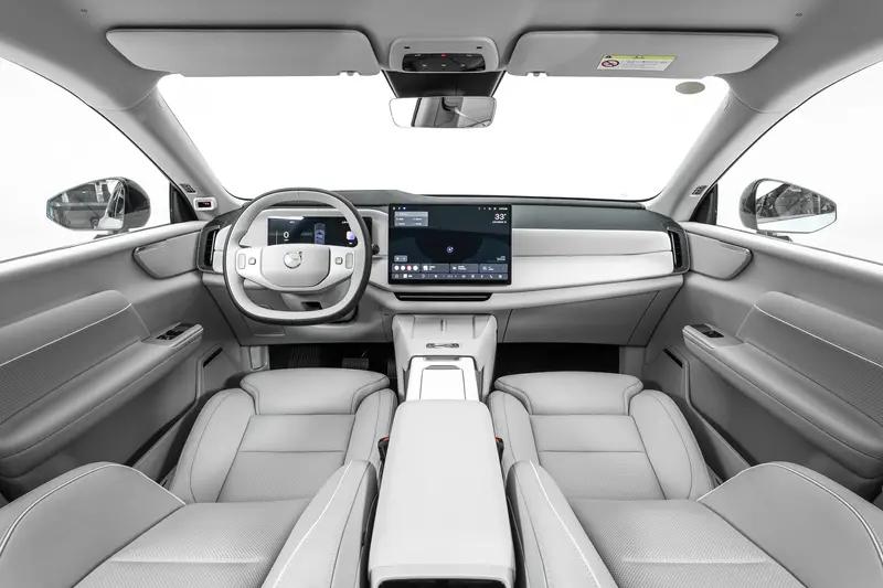 内饰方面,新车中控台采用了时下流行的极简式风格,12.3英寸仪表屏与15.4英寸中控屏均采用了悬浮式设计,中控台还加入了漫反射柔光饰板,灵感来源于北欧森林。此外我们能看到,新车还配备了50W手机无线快充、全景天窗等实用配置。
