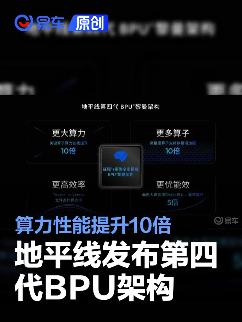 易车讯 今日,在2025地平线技术生态大会上,地平线创始人兼CEO余凯正式宣布推出第四代BPU架构,以数学家黎曼命名。该架构关键算子性能较前代提升10倍,能效比优化5倍,将率先搭载于征程7系列芯片,2026年实现量产装车。
