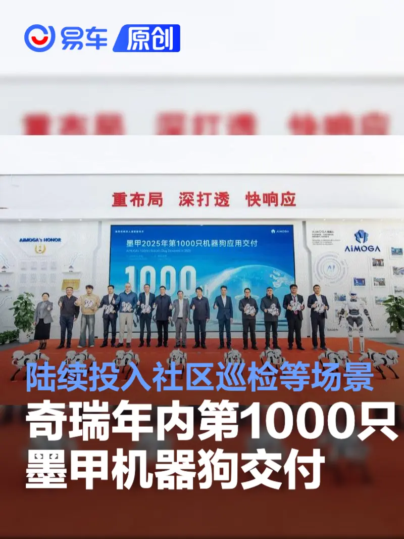 易车讯 日前,奇瑞墨甲机器人举行“2025年第1000只机器狗应用交付”仪式。新一批四足机器狗 Argos 将陆续投入家庭陪伴、社区巡检、厂区看护等真实场景,围绕陪伴、看护、安全巡查等任务实现“交付即上岗”。