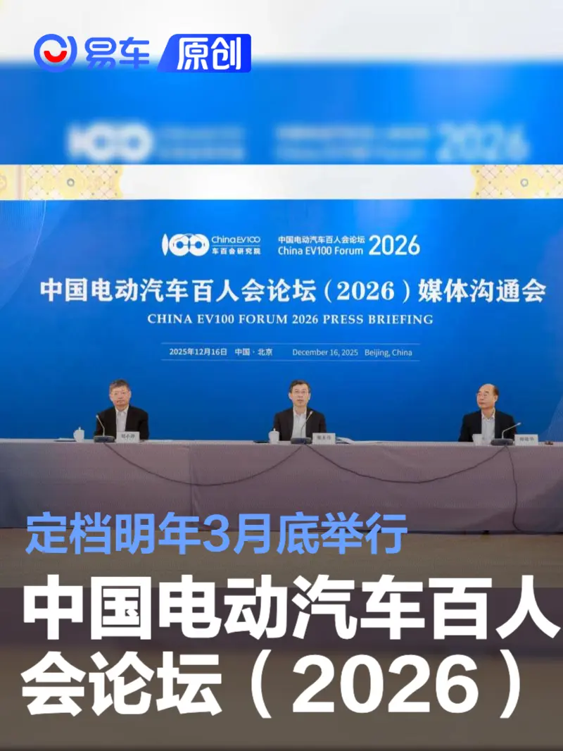 易车讯 2025年12月16日,在中国电动汽车百人会论坛(2026)媒体沟通会上,车百会正式宣布中国电动汽车百人会论坛(2026)将于2026年3月27日-29日在北京召开。