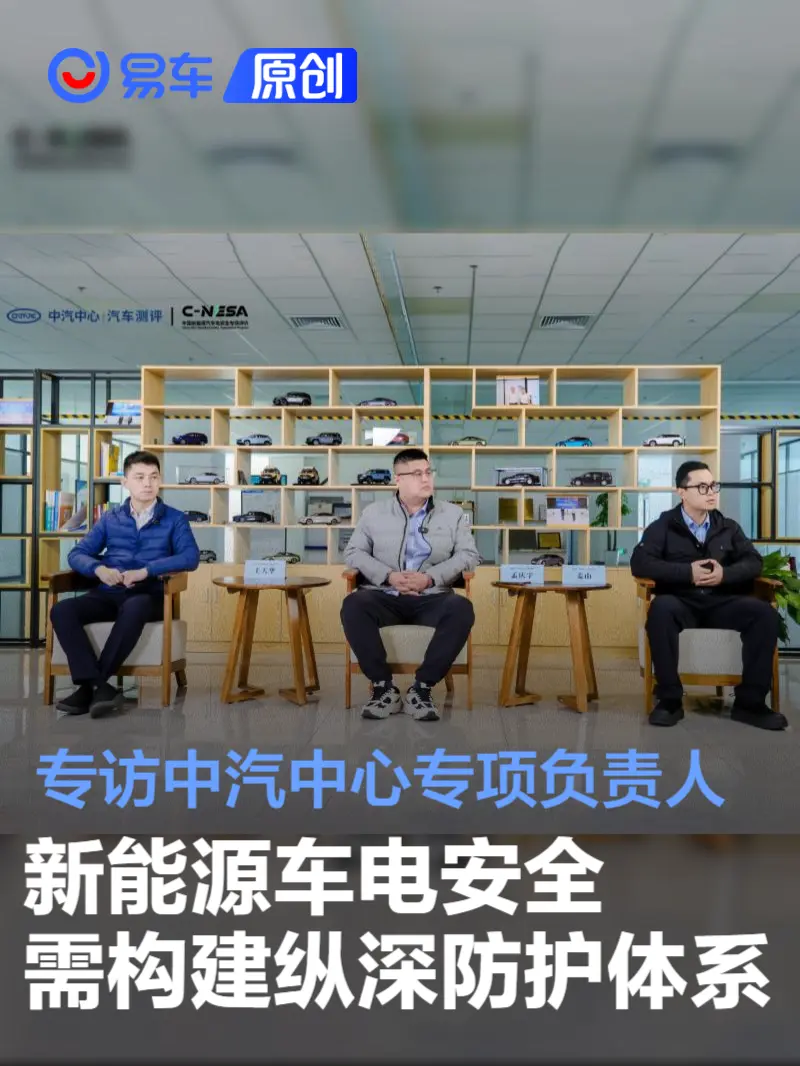 易车讯 日前,中汽中心汽车测评管理中心在天津新能源检验中心举办的年度第二次媒体发布会及电安全技术开放日活动上,正式发布《中国新能源汽车电安全测评专项(C-NESA)(1.0 版)首批测评车型测评报告》。在发布会结束之余,针对新能源车电安全问题,中汽中心CCRT专项负责人姜山、电安全专项负责人孟庆宇、商用车负责人王天华接受了易车的独家专访。