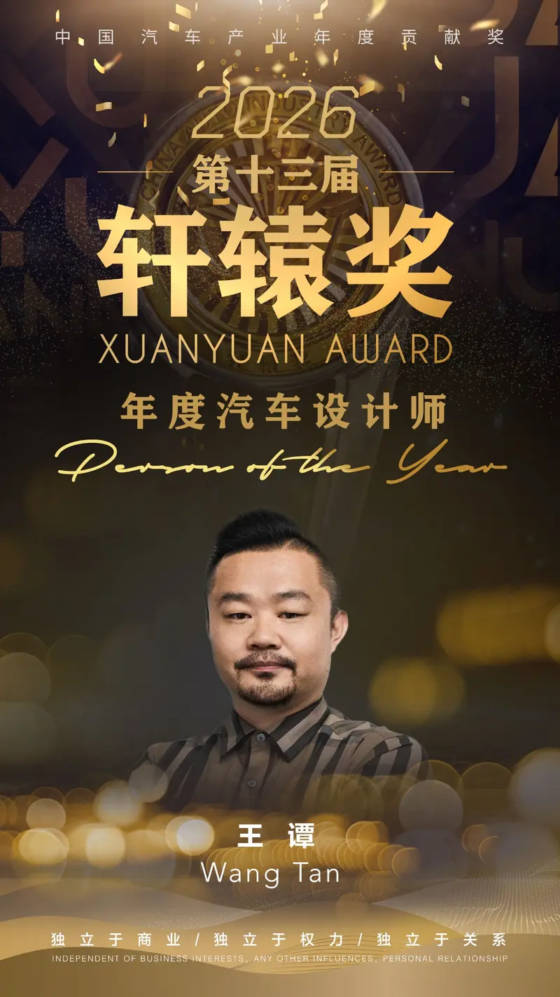 “中国年度最佳设计师”由小鹏汽车造型中心总经理王谭摘得,其设计理念精准契合当下消费审美趋势,为产品赋予了独特的视觉辨识度与情感共鸣。