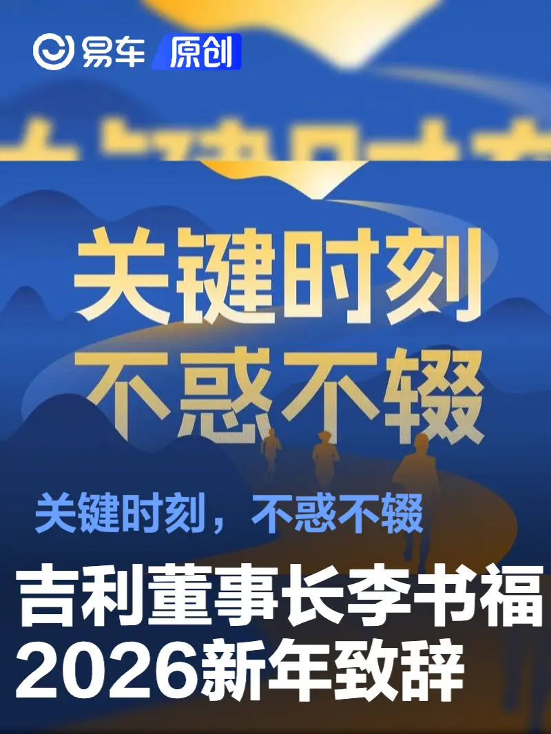 时光奔流,岁月常新。2026年曙光将至,我们回首来路,心潮澎湃。于吉利而言,此刻尤为厚重——我们即将迎来创业的第四十载春秋。四十年征途,每一步前行都镌刻着坚守与执着,每一次突破都饱含着艰辛与不易。值此辞旧迎新之际,我谨代表吉利控股集团,向所有全力以赴的吉利人,信赖吉利的用户、合作伙伴,长期关心和支持吉利发展的各界朋友,致以最诚挚的感谢与新年的问候!