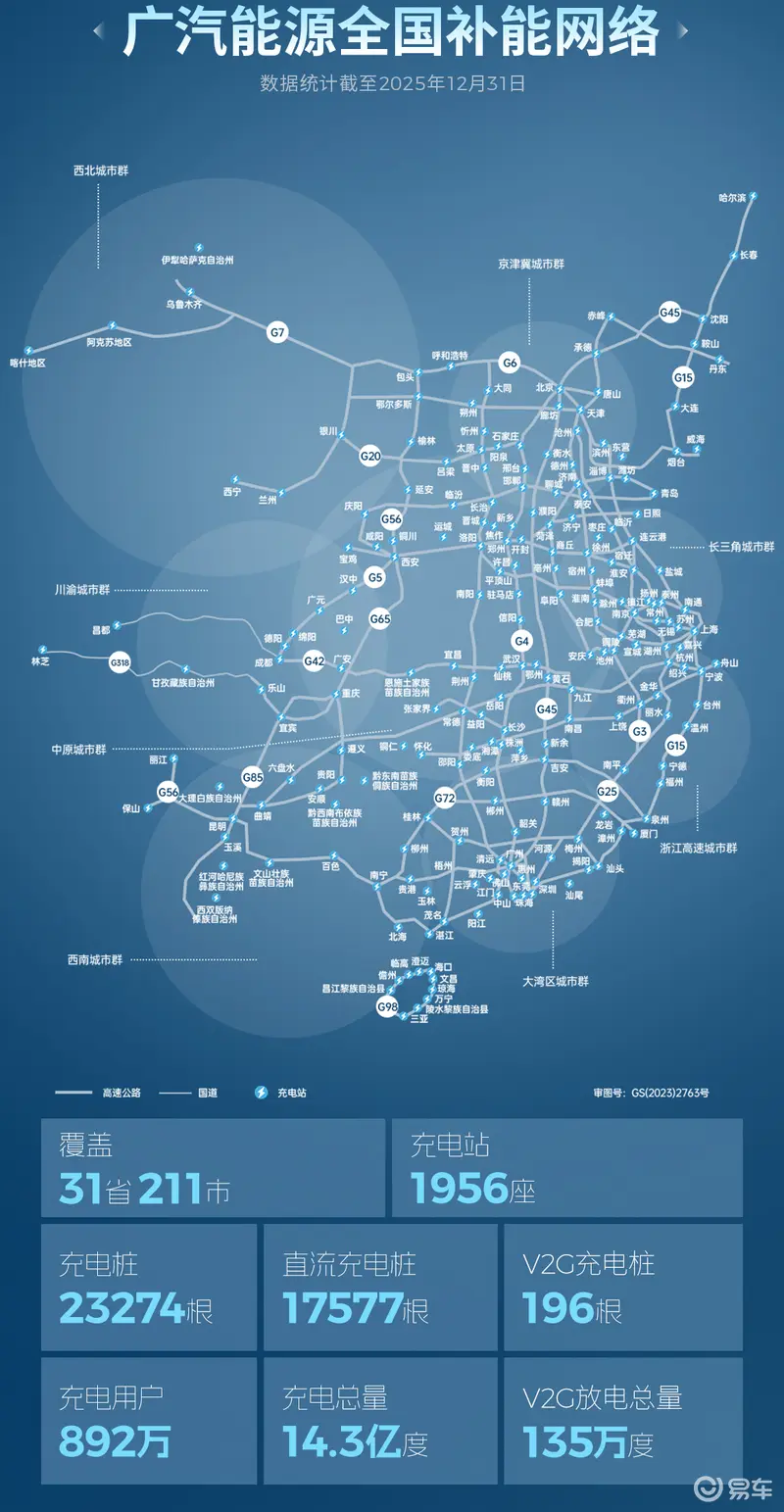 截止2025年12月31日,广汽能源构建起覆盖全国31省211市的全国补能网络,同步在V2G、储能、生态协同等领域取得显著突破。