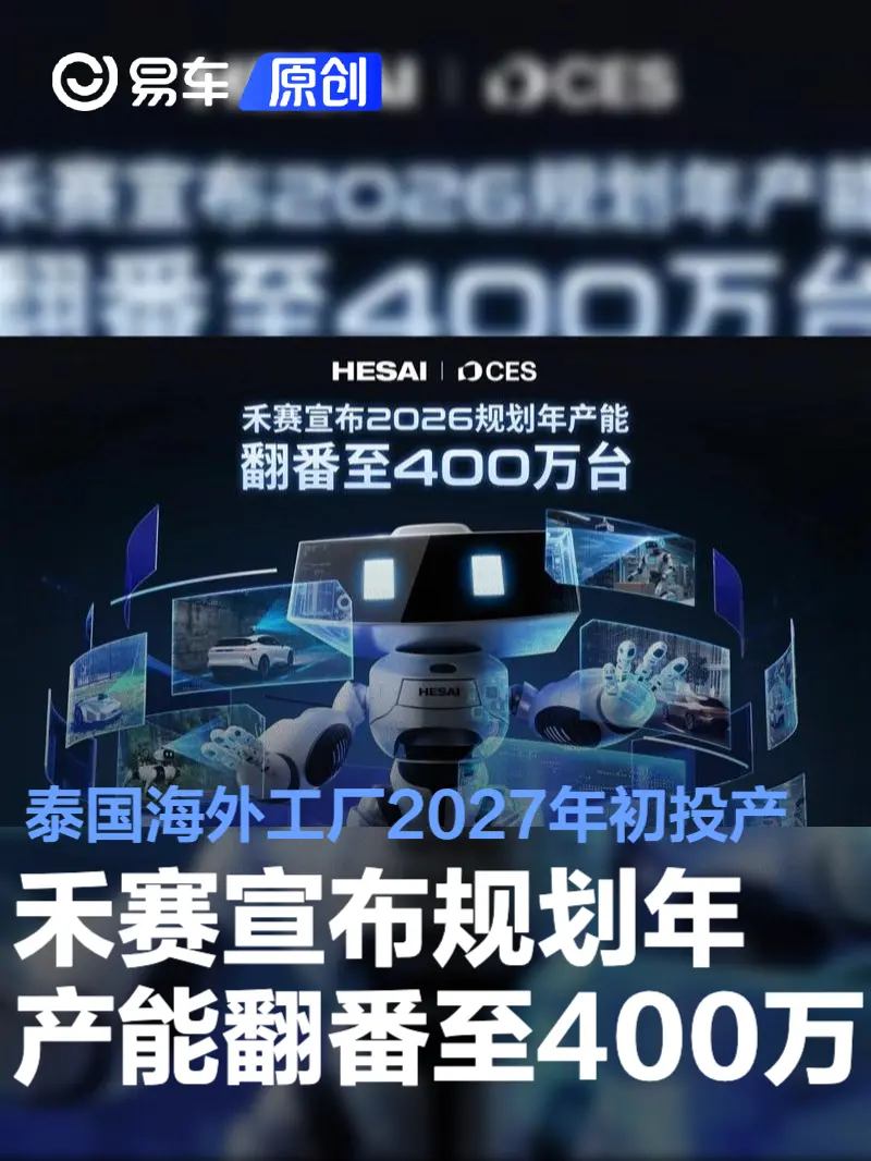 易车讯 在国际消费类电子产品展CES 2026上,禾赛科技宣布,为满足ADAS及机器人领域日益增长的激光雷达需求,公司规划年产能将由2025年的200万台提升至2026年的400万台,实现翻倍增长。此外,禾赛在泰国曼谷的新工厂建设正稳步推进,预计2027年初投产。