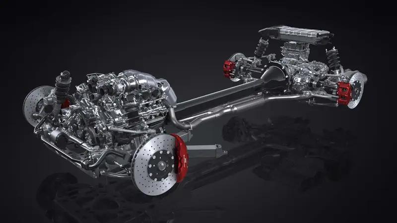动力方面,新车将搭载全新研发的4.0升V8双涡轮增压发动机,采用干式油底壳结构,传动系统则采用碳纤维强化聚合物复合材料(CFRP)制成的扭矩管与传动桥布局。其后置变速传动桥内集成了8速自动变速箱、单电机以及机械式限滑差速器。