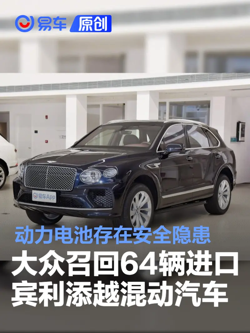 召回编号S2026M0006V:自2026年1月26日起,召回2023年3月7日至2023年11月27日期间生产的部分2023-2024年款进口宾利添越混合动力系列汽车,共计64辆。