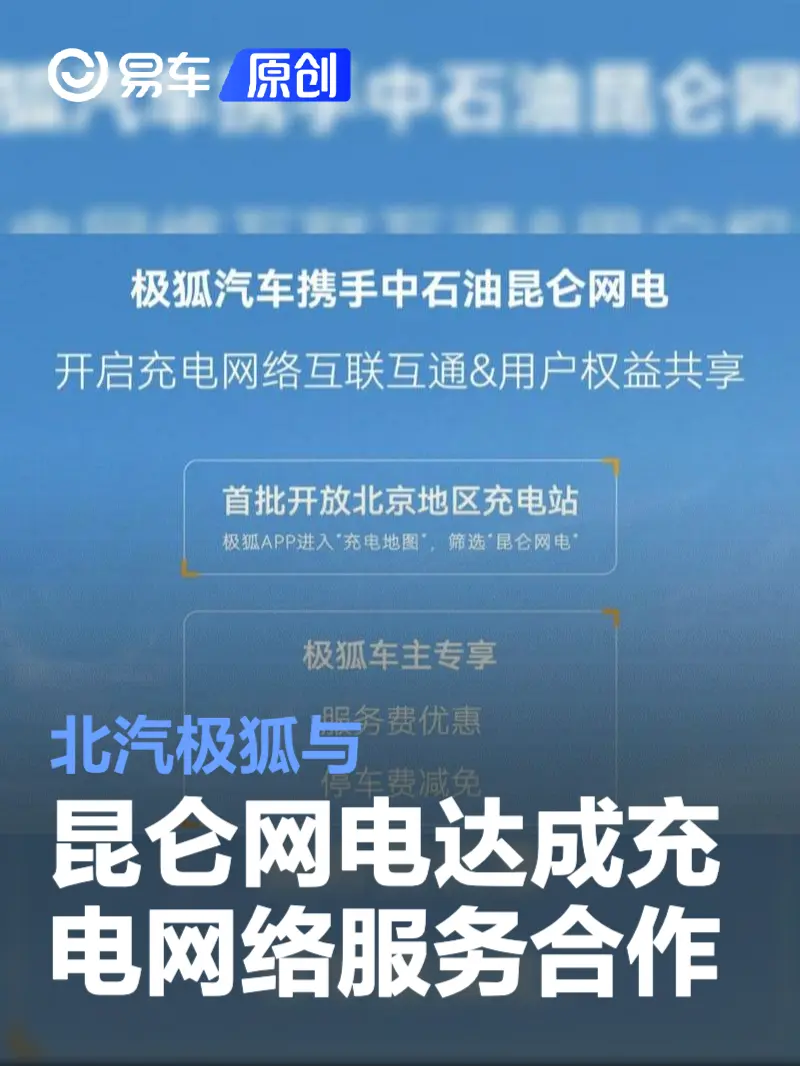 目前,北汽极狐在昆仑网电全国范围内可享受充电服务费95折优惠,部分场站还可尊享停车减免等专属权益。