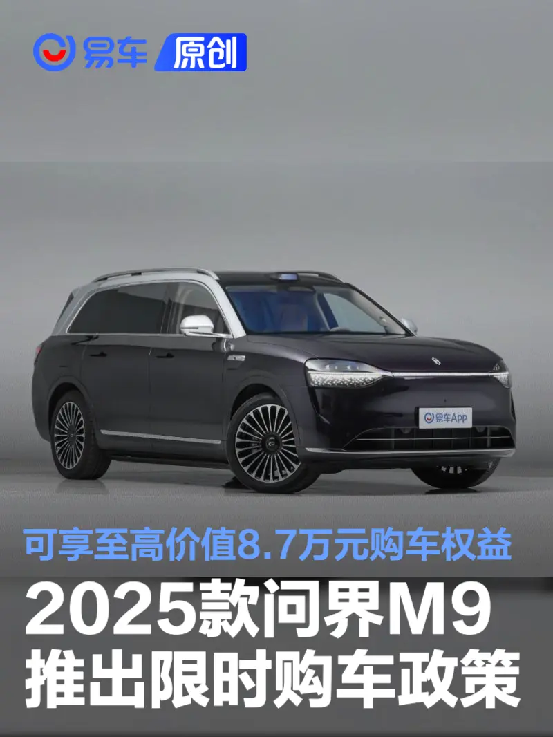 易车讯 1月19日,鸿蒙智行宣布即日起至2月2日,2025款问界M9推出限时购车政策,可享至高价值87000元购车权益。