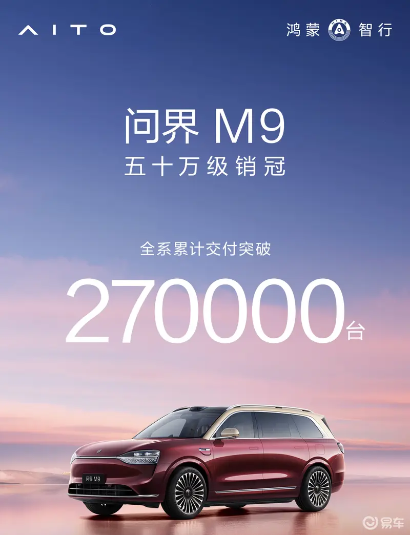 据最新数据统计,问界M9目前累计交付27万辆,累计21个月领跑50万级豪华市场。1月1日,鸿蒙智行公布2025年销量数据,全年累计交付589107台,年同比增长32%。