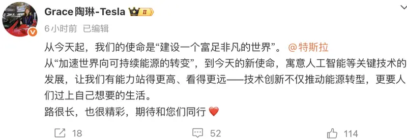 易车讯 1月21日,特斯拉公司发布使命正式更新为:建设一个富足非凡的世界 ('Our mission is to build a world of amazing abundance') 。