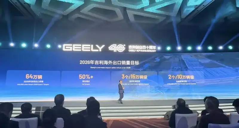 易车讯 1月22日,在“吉利创业四十周年”吉利控股集团战略解析会上,吉利汽车集团公布2026年吉利销量目标和战略规划。