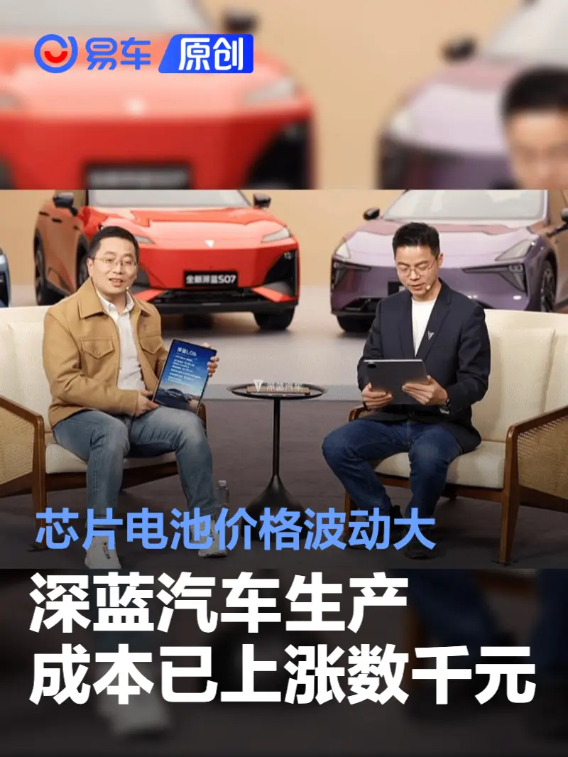 易车讯 日前,深蓝汽车董事长邓承浩在直播中透露,当前每辆深蓝汽车的生产成本已较此前上涨数千元,这一成本压力主要来自两大零部件,动力电池与车载存储芯片的价格剧烈波动。