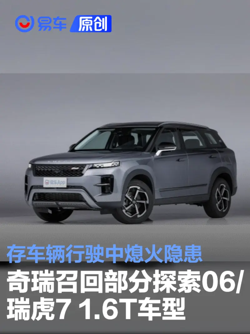召回编号S2026M0007V:自即日起,召回2025年4月1日至2025年12月8日期间生产的部分奇瑞牌探索06和全新瑞虎7 1.6T车型,共计1108辆。