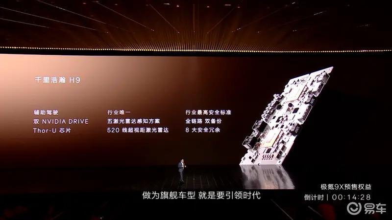值得一提的是,在智能辅助驾驶方面,极氪9X的Hyper版还首发搭载千里浩瀚H9智驾方案。千里浩瀚H9智驾方案采用极氪L3级智能驾驶技术架构,搭载ZEEA 3.0中央集中式数字架构,端到端链路响应速度提升50%。极氪L3级智能驾驶技术架构感知硬件将搭载5颗激光雷达方案,其中1颗为长距激光雷达和4颗补盲激光雷达。此外,新车为全球首个搭载两颗NVIDIA DRIVE Thor芯片,算力高达1400TOPS。