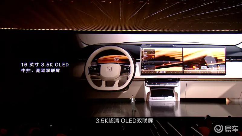 车辆的内饰采用环抱式的设计,并且采用了丰富的材质搭配,如木饰板、真皮、金属饰条等等,新车采用中控与副驾一体式的双联屏,搭配最新的极氪OS 7.0车机系统,在系统的操作、SR的界面上都提供了全新的体验。极氪9X将会搭载来自英国的naim品牌音响。新车提供3排6座布局,第二排同样拥有娱乐屏的配置。