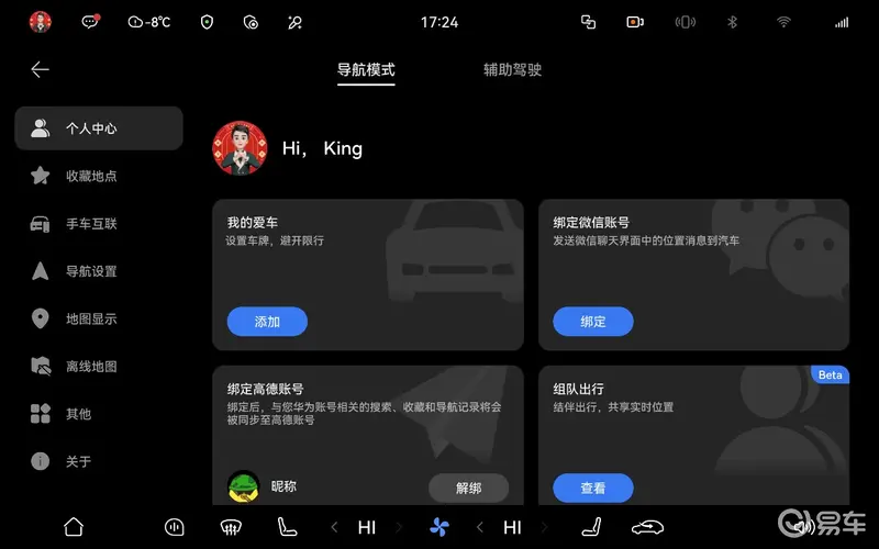 中控屏-ADS App-设置-个人中心-组队出行