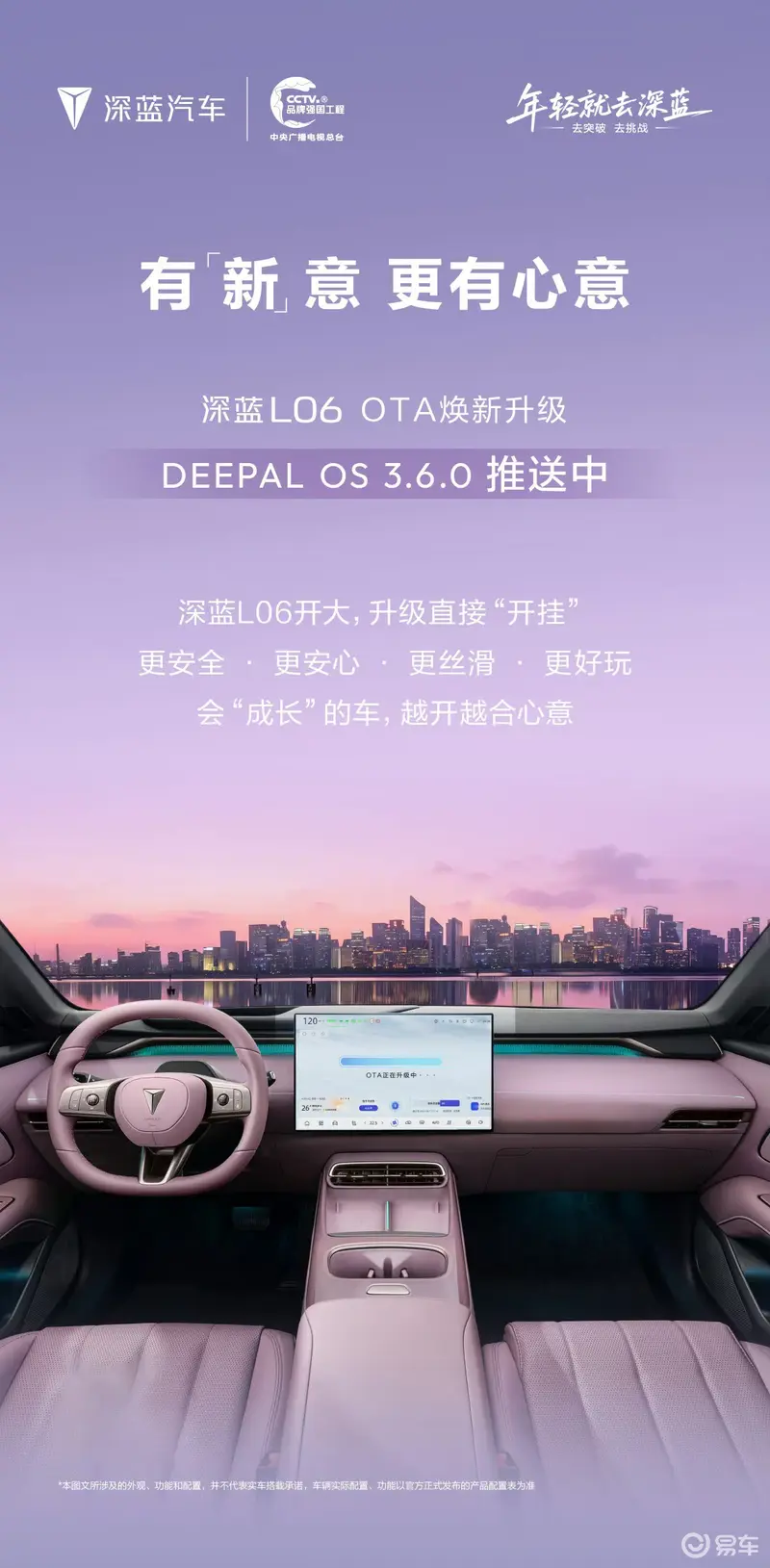 易车讯 1月30日,深蓝L06迎来OTA升级,DEEPAL OS 3.6.0版本陆续推送中。此次升级围绕“更安全、更安心、更丝滑、更好玩”四大维度,为用户带来更优质的出行体验。