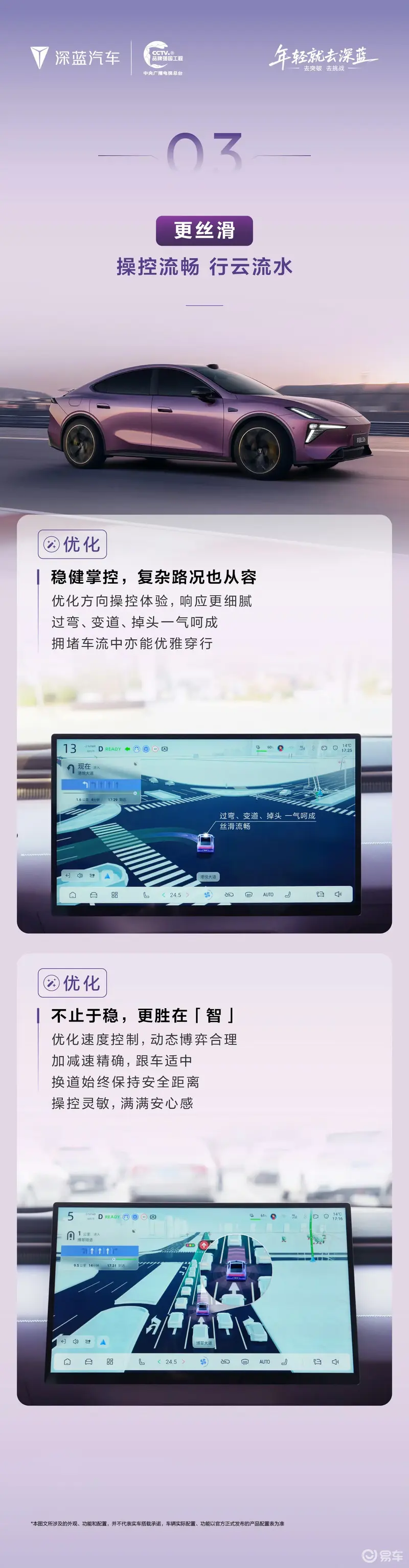 操控质感的优化是此次升级的一大亮点。深蓝L06方向盘操控平稳顺滑,路口掉头可实现一把过,驶入大曲率弯道时,行驶转向同样流畅精准。优化速度控制逻辑,加减速操作精准细腻,跟车距离适中,换道过程始终保持安全距离,为用户带来满满的安心感。