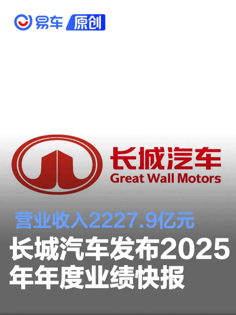 易车讯 1月30日消息,长城汽车发布2025年年度业绩快报,2025年实现营业收入2227.9亿元,同比增长10.19%,净利润99.12亿元,同比下降21.71%,基本每股收益1.16元。