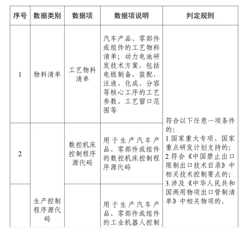 汽车数据处理者在汽车产品生产制造过程中,收集和产生的物料清单、生产控制程序源代码。