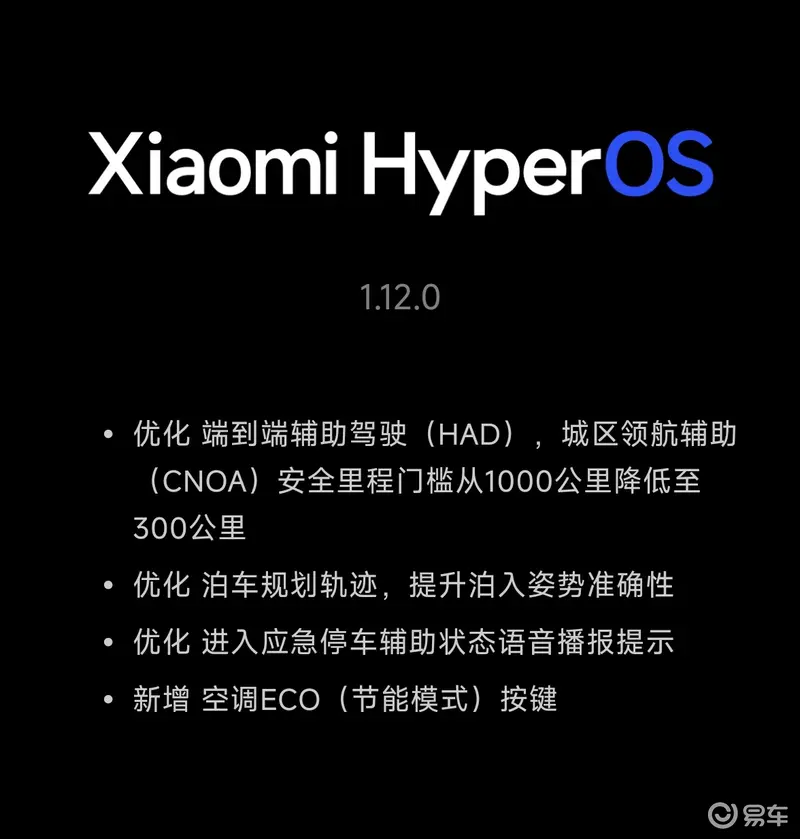 易车讯 近日,小米汽车官宣:小米YU7 OTA 1.12.0已开始陆续推送。辅助驾驶和智能座舱方面迎升级。