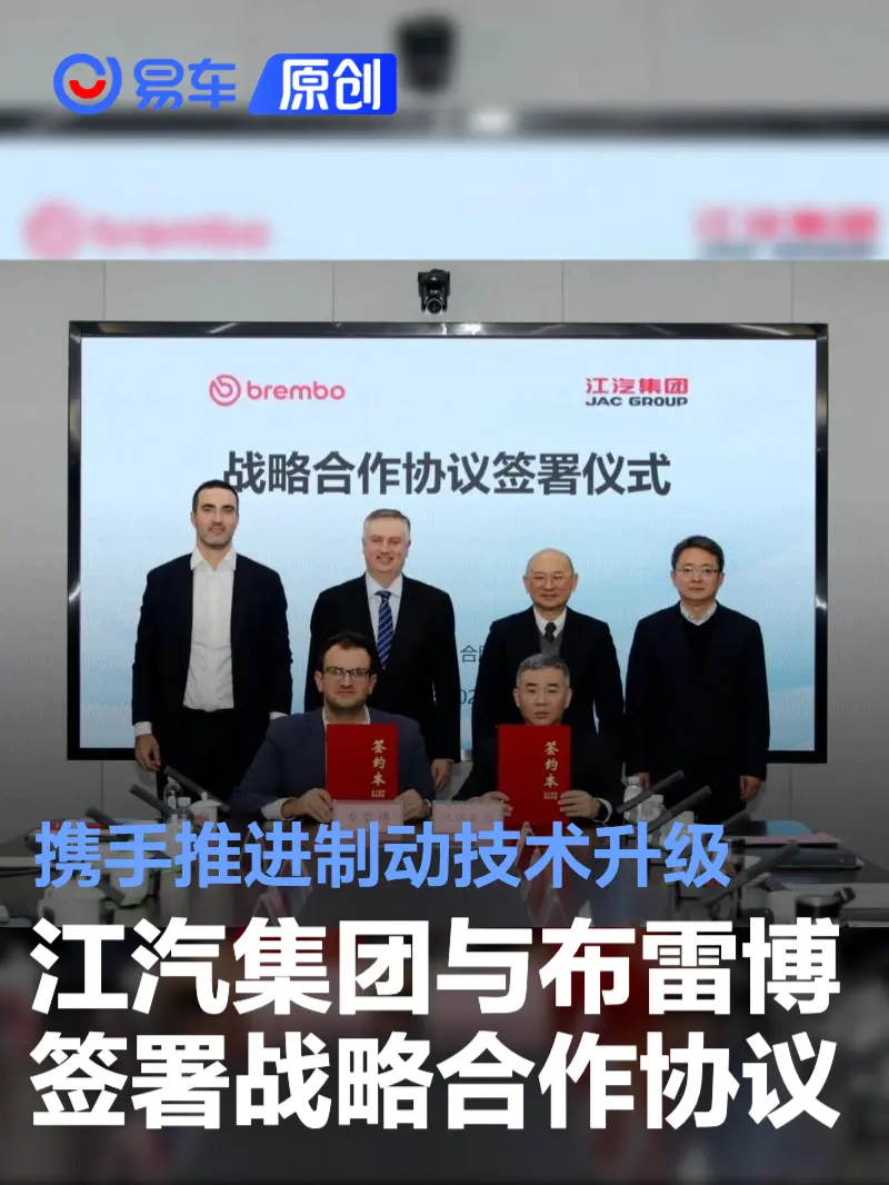 易车讯 2月6日,江汽集团宣布与全球领先的制动解决方案提供者布雷博签署战略合作协议,旨在加强长期合作,共同推动未来汽车平台的创新发展。此次协议的签订对双方具有里程碑意义——为基于共同承诺、面向下一代出行技术的更广泛合作奠定了坚实基础。通过本次合作,布雷博与江汽集团将携手推进制动技术升级与先进软件解决方案的落地,以满足中国汽车市场日益变化的需求。