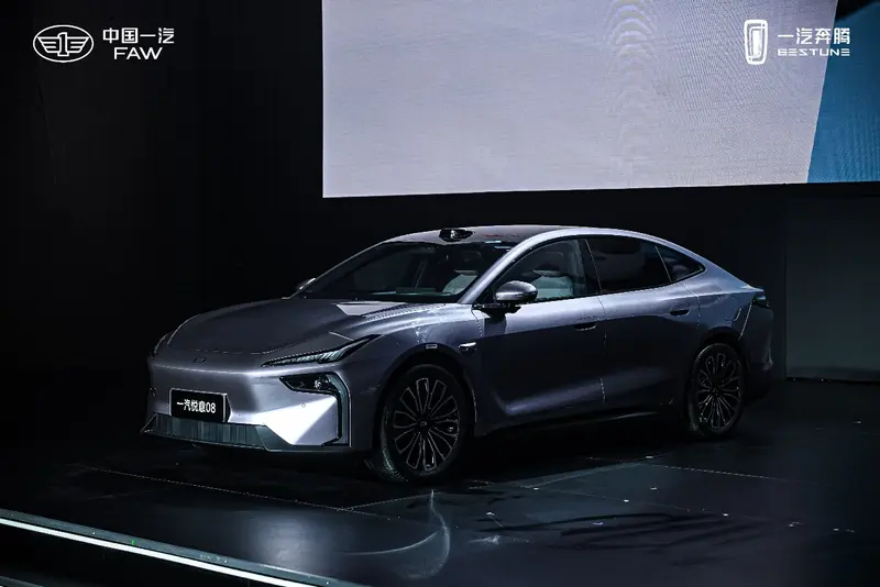 在本次战略焕新中,一汽奔腾全面拥抱智能化,将“奔腾悦意”新能源序列战略升级为独立的“一汽悦意”新能源品牌,旗下全新旗舰车型正式命名为“一汽悦意08”。一汽悦意08的尾标为“FAW”,下方的生产主体为“中国一汽”,是一汽悦意首款“FAW”尾标的车型。