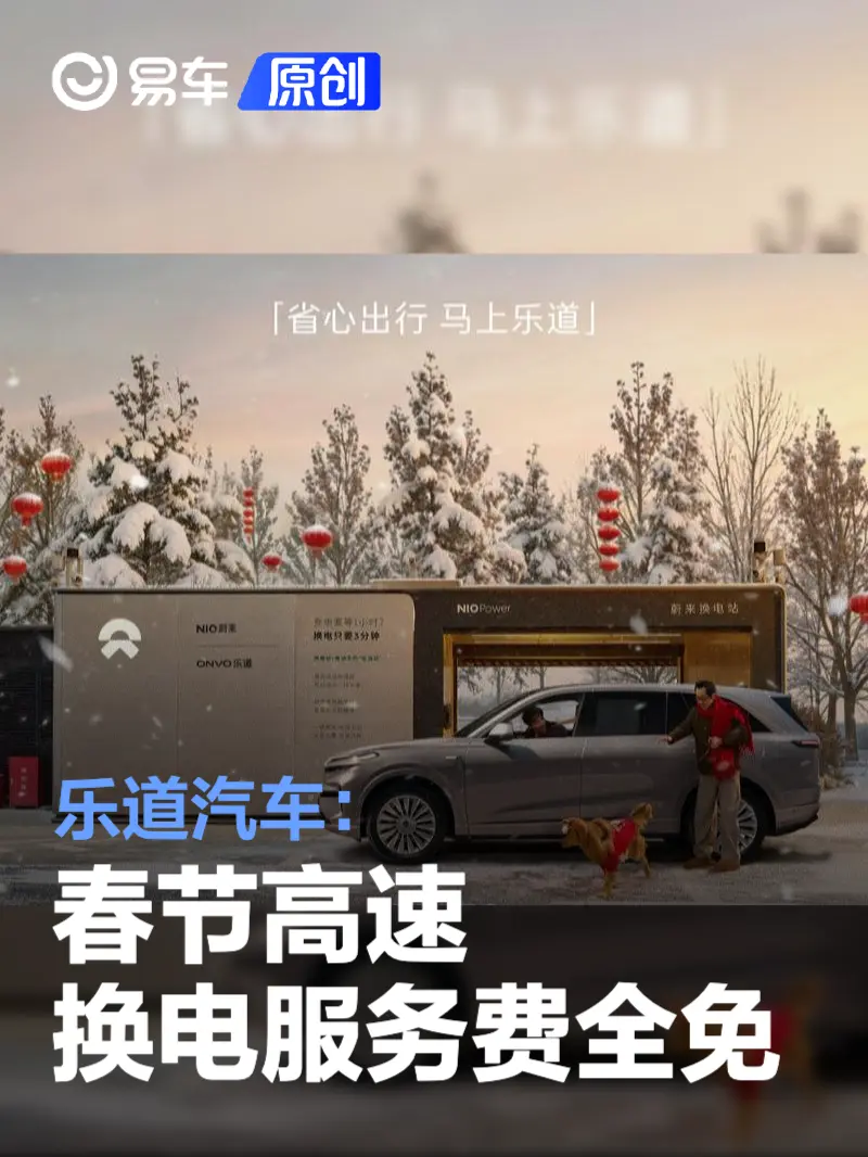 易车讯 2月6日,在蔚来公司一亿次换电达成直播活动上,蔚来高级副总裁兼乐道汽车总裁沈斐表示,2月15日(腊月廿八)-2月23日(正月初七)春节假期期间,全国乐道车主,春节高速换电服务费全免。