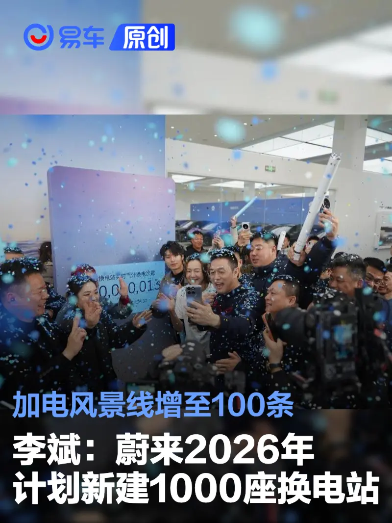 易车讯 2月9日,蔚来创始人、董事长、CEO李斌在公众号发文表示,2026年,我们计划新建1000座换电站,加电风景线增至100条,继去年G318川藏换电路线、滇藏换电路线贯通之后,今年将打通丝绸之路换电路线,不断拓展用户出行边界。今年第五代换电站即将开启大规模建设,firefly萤火虫用户也很快将享受到便捷的换电体验。我们也将持续提升充换电网络的能源商业运营能力,为充换电业务盈利打下坚实基础。