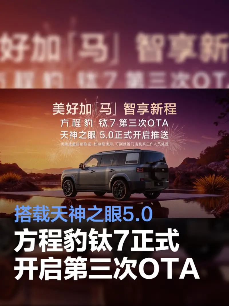 方程豹钛7通过第三次OTA,在核心智能驾驶算法、沉浸式座舱体验及全域出行品质上实现了系统性增强。这不仅展现了方程豹品牌强大的软件迭代与技术落地能力,更体现了其以用户为中心、持续推动产品进化的坚定承诺。未来,钛7将继续伴随用户需求不断成长,在智能出行领域持续探索前行。