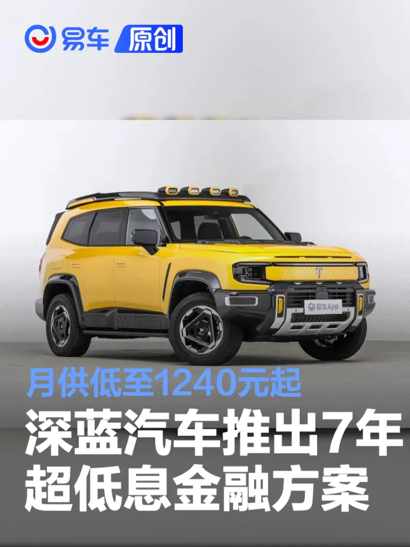 易车讯 今日,深蓝汽车推出7年超低息金融方案:首付15%起,四重补贴叠加,月供低至1240元起。