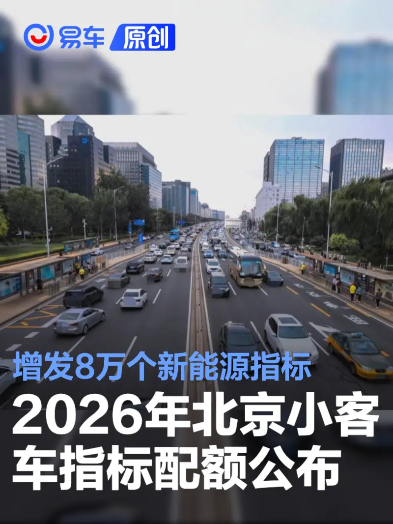 易车讯 2月15日,北京市发布2026年小客车指标配额和配置比例,2026年北京市常规小客车指标配额为10万个,另外增发新能源指标8万个。