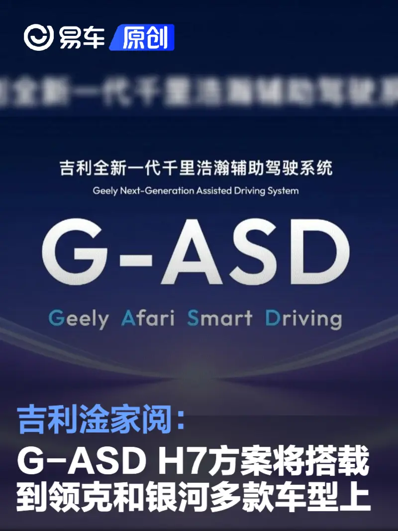 易车讯 2月24日,吉利汽车集团CEO淦家阅(阿甘)向全体员工发布新春寄语。淦家阅表示,2026年千里浩瀚 G-ASD还会继续快速迭代,G-ASD H7方案也将搭载到领克和吉利银河的多款车型上。