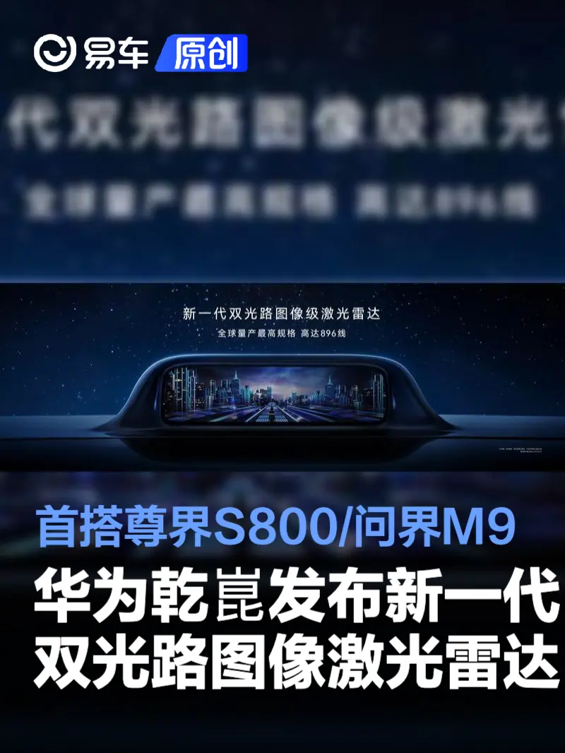 易车讯 在鸿蒙智行技术焕新发布会上,华为乾崑智能汽车解决方案发布新一代双光路图像级激光雷达,成为目前全球量产最高规格的激光雷达产品,感知能力从“点云级”正式迈入“图像级”。官方表示,尊界S800和问界M9将首批搭载新一代双光路图像级激光雷达。