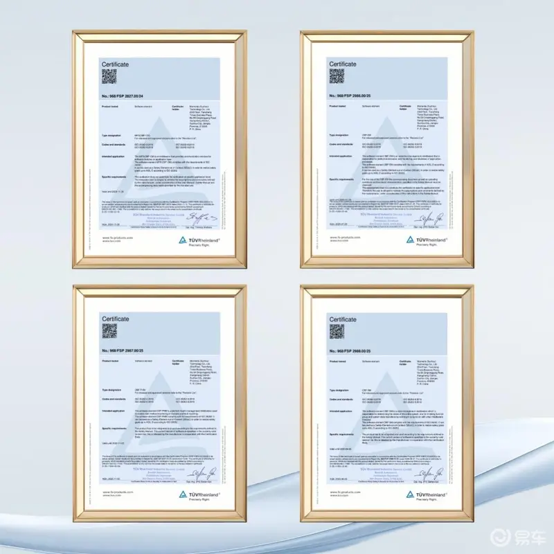 易车讯 3月6日,Momenta 宣布了一项在智能驾驶安全领域的里程碑式成就:其自研的自动驾驶统一基础软件框架OBF(Open BSW Framework)的三款中间件产品——执行管理(OBF-EM)、状态管理(OBF-SM)与平台健康管理(OBF-PHM),均获得国际知名检测认证机构德国莱茵TÜV的最高等级ISO 26262 ASIL D功能安全产品认证。继2024年率先拿下通信管理中间件(OBF-CM)认证后,至此,Momenta成为业界首个在所有负责安全机制的关键中间件上,均已通过国际认证机构最严格的ASIL D安全等级评估的企业。这标志着Momenta已在底层架构上构建起国际领先的智驾安全体系,为“软件定义汽车”时代的系统级安全,树立了全新的行业标杆。