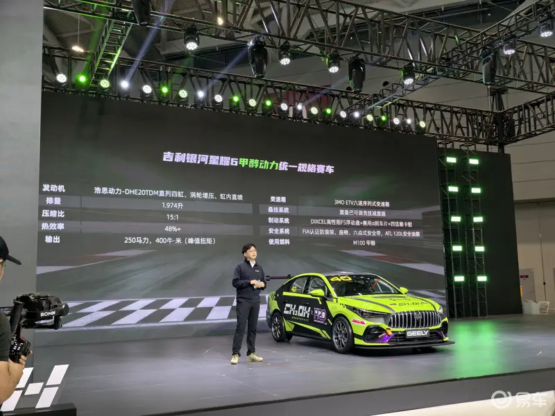 易车讯 3月20日,吉利银河星耀6甲醇动力统一规格赛车正式亮相,本次发布的绿色拉花的赛车,基于吉利星耀6打造。2025年吉利控股集团成功完成首台绿色甲醇赛车冬季测试,并发布“吉利绿色甲醇赛车计划”。
