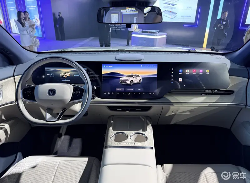 内饰方面,第四代CS75PLUS蓝鲸超擎相比在售车型新增了慕雪青山配色。其余配置方面,新车搭载10.25英寸全液晶仪表+14.6英寸中控多媒体触控屏+12.3英寸副驾娱乐屏的三屏设计,科技感十足。此外,新车还搭载手机无线充电面板、电子怀挡等。