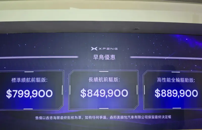 易车讯日前,小鹏汽车平台产品营销总监郑荣卿在微博上表示,全新小鹏X9在香港上市,早鸟价799900港元起。